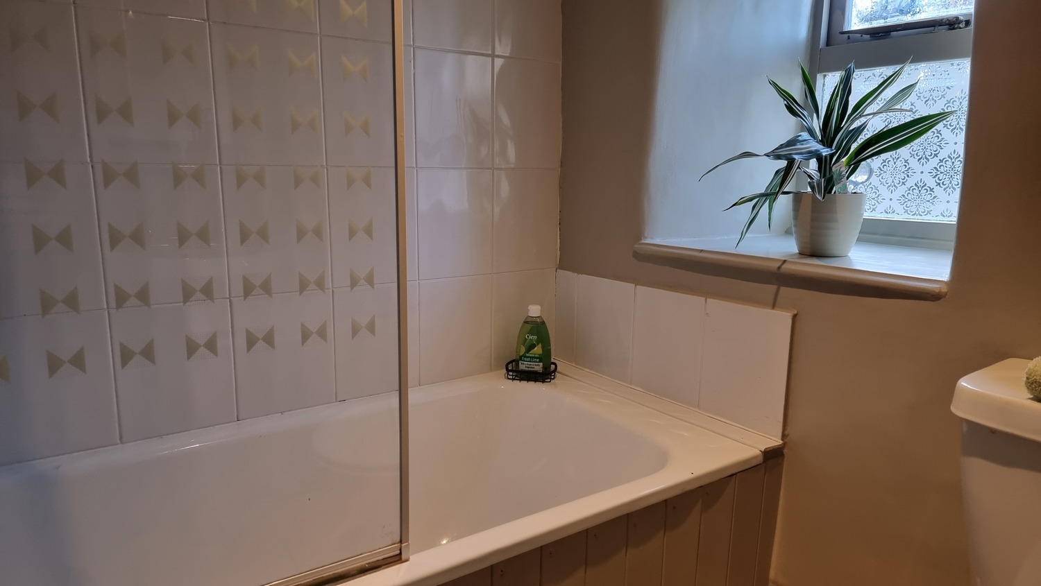 Bathroom with shower over the bath